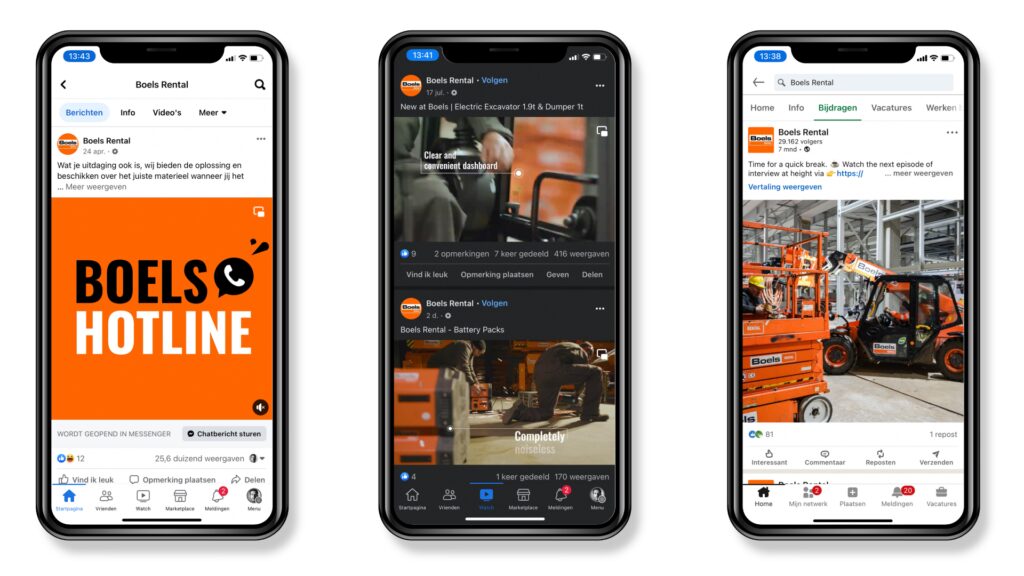 Om de vraag beter te doorgronden, organiseerden we meerdere workshops en kennissessies. Samen met het Corporate Social Media team van Boels ontwikkelden we verschillende persona’s, die ons hielpen de vraag te vertalen naar een effectieve inzet van social media en bijpassende content.